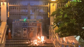 9点53分,有示威者试图点燃垃圾桶,并用手推车将其推向警方阻拦线,并焚烧杂物试图阻挡警方前进。同时示威者宣称再次冲击黄大仙警署。