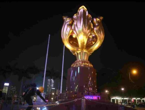 9点25分,部分示威者向金紫荆方向前进,扬言“搞中国国旗”。示威者抵达金紫荆广场后,在雕塑上喷涂带有侮辱性的语言。