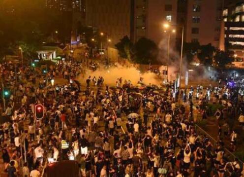 当晚经多次警告无效后,港警在尖沙咀和旺角地区进行清场,期间暴徒继续向警方投掷汽油弹、砖头、玻璃瓶及大量有杀伤力的杂物,还用强力激光照射警员眼部,点燃垃圾桶并将其推向警方阻拦线。香港警方表示,当晚在黄大仙警署附近也发生了与激进示威者的对峙。当警员车离开现场时,有暴徒包围并试图破坏警车,还有人向警车抛掷杂物,甚至用灭火器喷射警员。