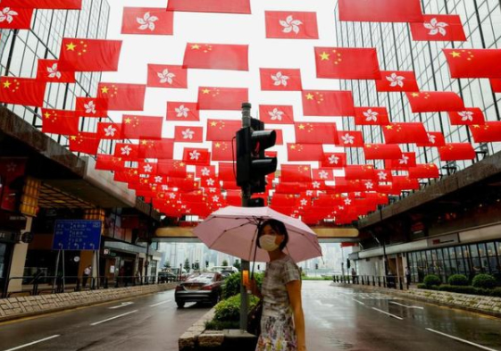 香港回归祖国24周年纪念日,日前,在位于香港尖沙咀的一处街道上看到,街道上方悬挂了数百面中华人民共和国国旗和香港特别行政区区旗,布置成为一片红色的“旗海”。不少香港市民赶来现场观光“打卡”,纷纷感叹场景“壮观”。有市民表示,在网络上看到消息后就马上赶来参观,她称这种场景在以往的香港不常见到,能够来到现场参观,感到非常高兴和感动。图片来源:澎湃影像